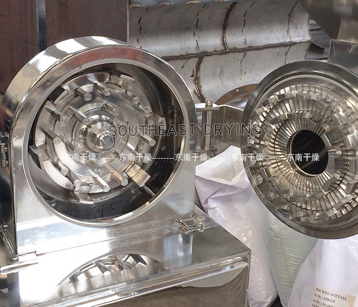 本機組利用活動齒盤和固定齒盤間的相對運動,使物料經齒沖擊、摩擦及物料彼此間;沖擊而獲得粉碎。粉碎好的物料經旋轉離心力的作用自動進入捕食袋,粉塵由吸塵箱經布袋過濾回收。該機按“GMP”標準設計,全部用不銹鋼材料制造,生產過程中無粉塵飛揚。且能提高物料的利用率,降低企業成本,目前已達到較高水平。