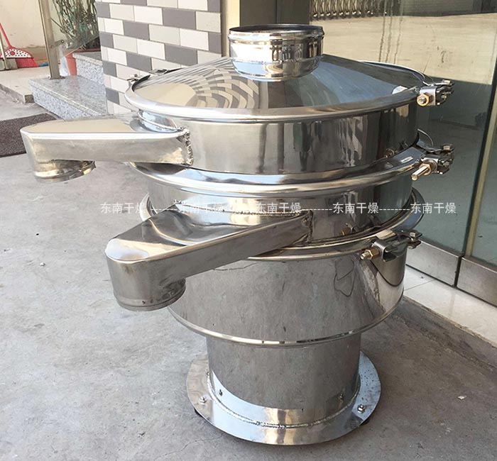 本機(jī)由料斗、振蕩室、聯(lián)軸器、電機(jī)組成。振蕩室內(nèi)有偏心輪、橡膠軟件、主軸、軸承等組成。可調(diào)節(jié)的偏心重錘經(jīng)馬達(dá)驅(qū)動(dòng)傳達(dá)到主軸中心線,在不平衡的狀態(tài)下產(chǎn)生離心力,使物料強(qiáng)度改變,在篩內(nèi)形成軌道旋渦。重錘調(diào)節(jié)器的振幅大小可根據(jù)不同物料和篩網(wǎng)進(jìn)行調(diào)節(jié)。