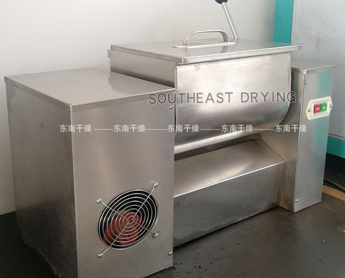 本機與物料接觸處均采用不銹鋼制造,槳葉與桶身間隙小,混合無死角,攪料軸兩端設有密封裝置,能防止物料外瀉。