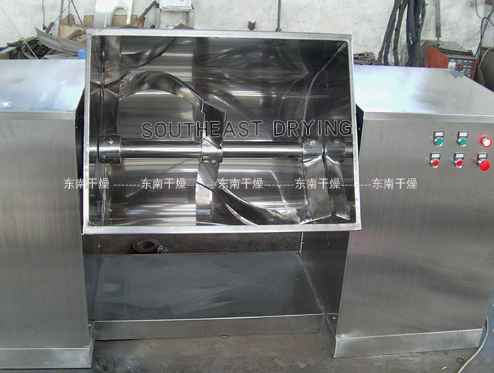 用于混合粉狀或濕性物料,使不同比例主輔料混合均勻。本機與物料接觸處均采用不銹鋼制造,槳葉與桶身間隙小,混合無死角,攪料軸兩端設有密封裝置,能防止物料外瀉,廣泛適用于制藥、化工、食品等行業。