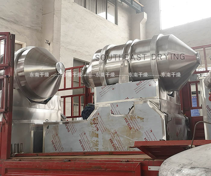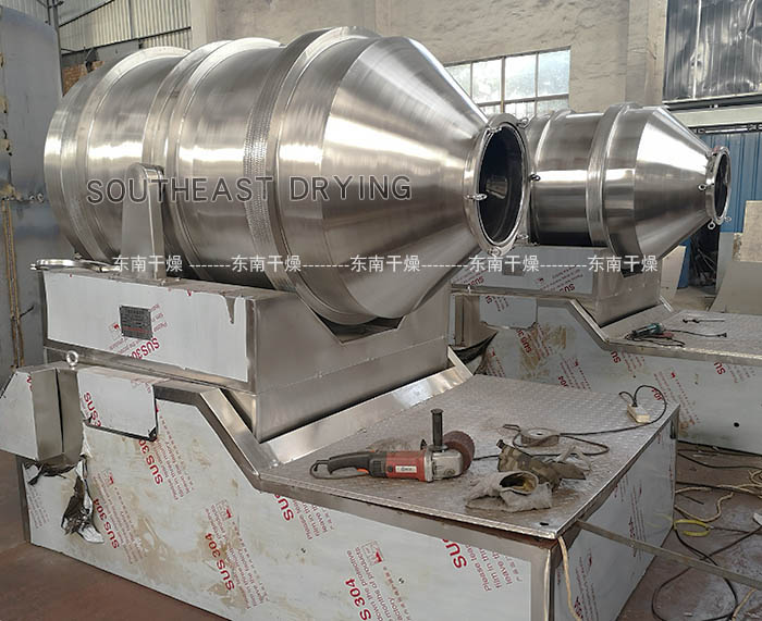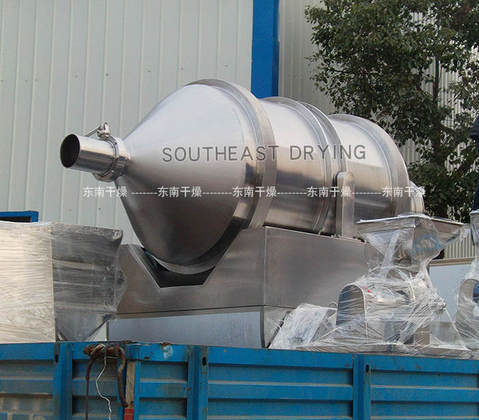 EYH二維混料機的轉筒可同時進行二個運動,一個為轉筒的轉動,另一個為轉筒隨擺動架的擺動。被混合物料在轉筒內隨轉筒轉動、翻轉、混合的同時,又隨轉筒的擺動而發生左右來回的摻混運動,在這兩個運動的共同作用下,物料在短時間內得到充分的混合。EYH二維混料機適合所有粉、粒狀物料的混合。