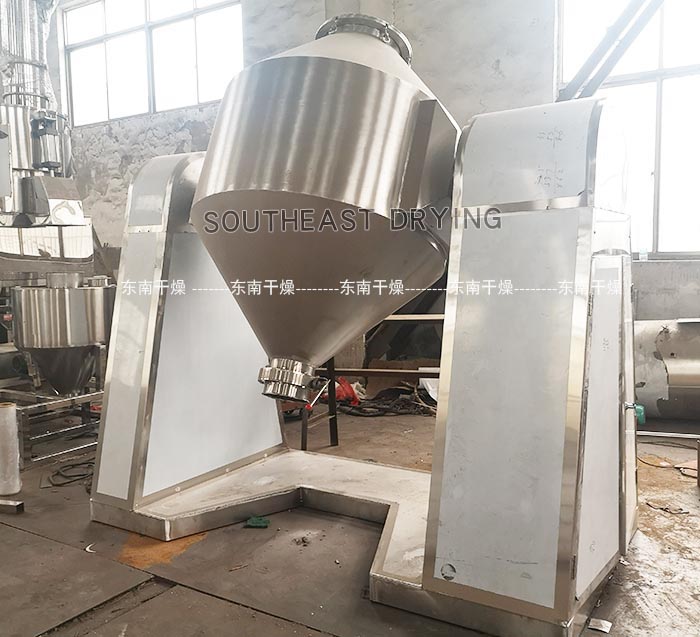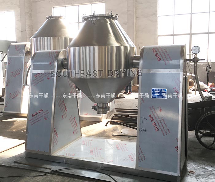 本機(jī)將粉末或粒狀物料通過真空輸送或人工加料到雙錐容器中,隨著容器的不斷旋轉(zhuǎn),物料在容器中進(jìn)行復(fù)雜的撞擊運(yùn)動(dòng),達(dá)到均勻的混合。