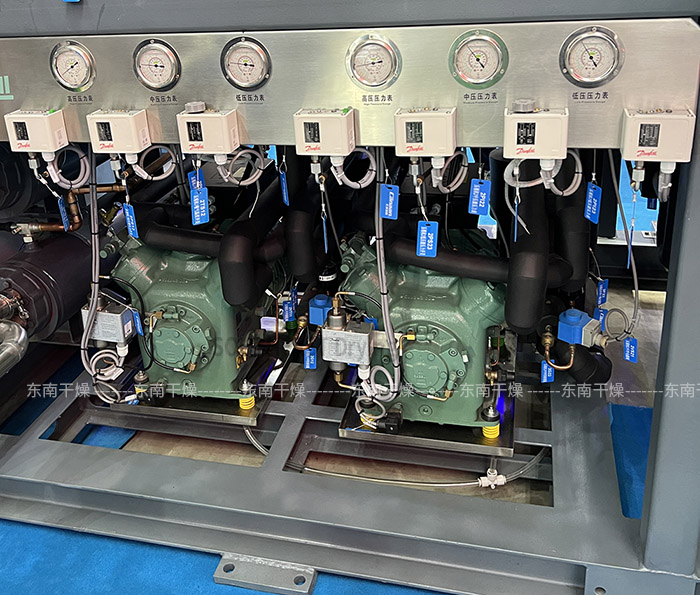 5、制冷系統:活塞壓縮機、螺桿壓縮機、壓力溫度電子冷卻水等多重保護,確保東南凍干機的高可靠穩定性;